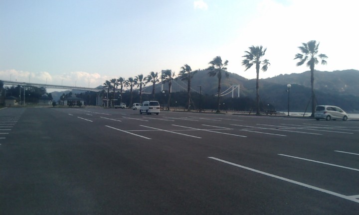 全長1480mの橋上は海風も強かった。 ただ、瀬戸内海の遠景はきれいでゆったりしてて自分が高所にいることを忘れさせた。 ずいぶん時間をかけて渡りきった時に、右足踵裏にピリッと痛みが走った。どうやら大きなマメを作ってしまったらしい。多々羅大橋から大三島の地上へ降りて いく坂道で歩くたびにピシッ、ピシッと痛む。しかも少し休んで歩きを再開しようとすると余計に痛む気がする。 弱った!、ここまでか!? それでも、傍目には異様だったと思うが、歩き方を工夫?すると痛みが大して感じられないことに気づいて、歩き再開。サイクリングロード沿いに行けばここは 大回りになるが、橋のたもとにある道の駅「多々羅しまなみ公園」の方へ移動すれば、かなりのショートカットだ。 ただ、それでもそれほど長くないはずの大三島の行程にかなり時間がかかってしまった。気づけば2時半を過ぎている。気持ちばかり焦って、次の大三島橋を 目指す。 |